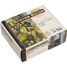 "Start"-Artikel zum System "Decor", Lichterkette mit 100 warmweissen LEDs und schwarzem Kabel mit Transformator. Für maximal 1000 Leuchtmittel geeignet. Dekorieren Sie Ihr Haus, Garten und Terrasse. System "Decor" Produkte sind einfach zu bedienen, die Produkte haben schlanke Gehäuse und sind leicht zu verbergen.
