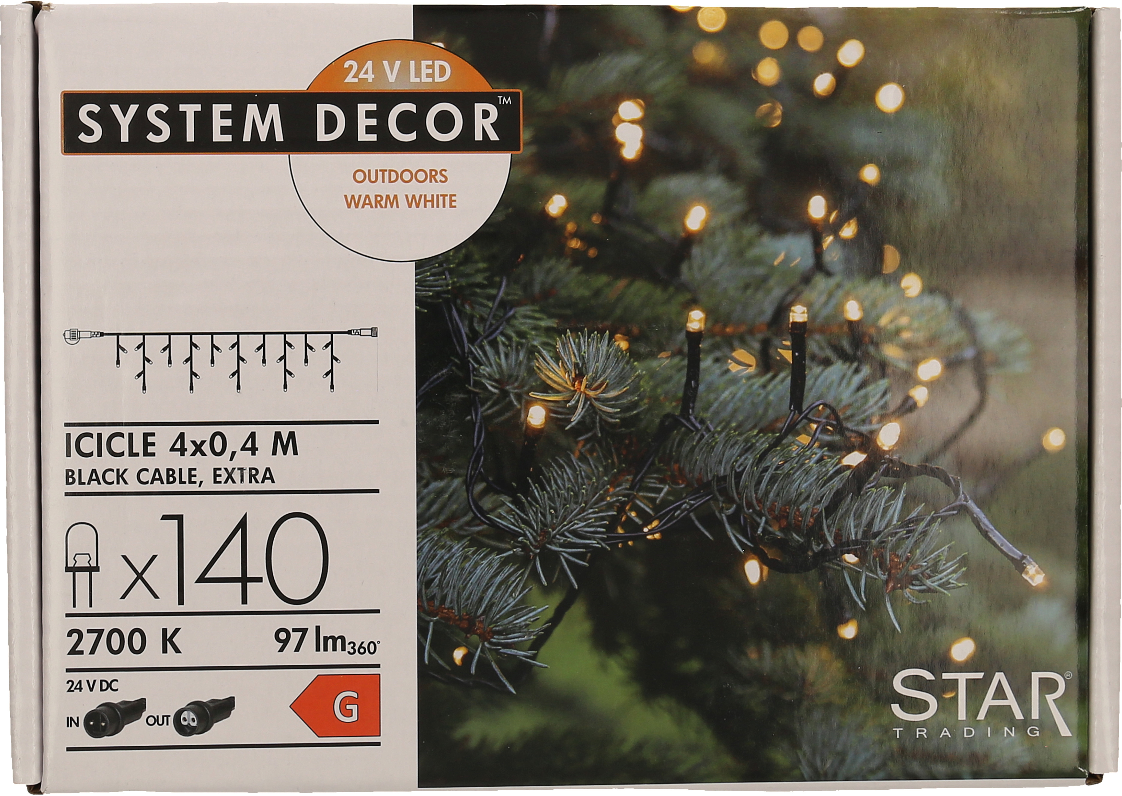 "Extra"-Artikel (Startartikel wird benötigt) zu System Decor, Icicle-Lichterkette, 0,4x4m mit 140 warmweissen LEDs und schwarzem Kabel. Erweitern Sie Ihr System Decor mit dieser Lichterkette. Dekorieren Sie Ihr Haus, Ihren Garten und Ihre Terrasse. System Decor Produkte sind einfach zu bedienen, die Produkte haben schlanke Kabel und sind leicht zu verbergen.