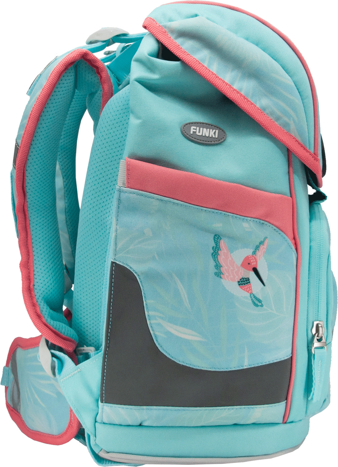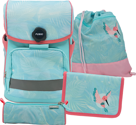 Der CUBY-Bag ist im fünfteiligen Set erhältlich, bestehend aus Schulrucksack, Schüleretui, Turnsack und Rundbeutel.. Der Regenschutz ist im Set mit dabei, damit alles auch bei Regen schön trocken bleibt.