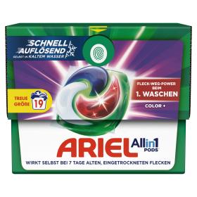 Entdecke Ariel, die Nr. 1 meist empfohlene Waschmittelmarke von führender Waschmaschinenmarken in Deutschland, wie: Bauknecht, Siemens, Bosch und AEG. Die All-in-1 PODS Color+ haben eine zusätzliche rote Kammer und bieten kraftvolle Fleckenentfernung schon ab dem ersten Waschgang. Sie wirken sogar gegen 7 Tage lang eingetrocknete Flecken. Zudem wurden die Ariel All-in-1 PODS-Waschkapseln für die Kaltwäsche entwickelt und lösen sich selbst in kaltem Wasser schnell auf. Wasche kälter mit den Ariel All-in-1 PODS Color+ : Spare Energie bei jedem Waschgang und reduziere Deine CO₂-Emissionen. Zudem tragen die Ariel All-in-1 PODS-Waschkapseln auch zum Reduzieren von Plastik bei, und zwar dank der recycelbaren ECOCLIC Kartonbox, die im Altpapiercontainer recycelbar ist. Zu 70 % aus recycelten Fasern hergestellt, enthält sie nur maximal 5 % Plastik und wurde entwickelt, um Deine PODS zu schützen. Die zu 100 % wasserlösliche Folie der PODS löst sich bei Kontakt mit dem Wasser vollständig auf und setzt die kraftvolle Formel zur Fleckenentfernung frei, die für Ariels gründlichste und stärkste Reinigung mit All-in-1 PODS Color+ sorgt. Achtung: Darf nicht in die Hände von Kindern gelangen. Verursacht schwere Augenschäden. Verursacht Hautreizungen. Bewahre die Ariel All-in-1 PODS Waschkapseln stets ausser Reichweite von Kindern auf. Mehr unter keepcapsfromkids.eu.