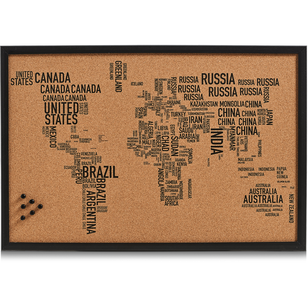Dieses praktische Pinbord wurde aus Kork hergestellt und überzeugt durch sein ansprechendes und ausgefallenes Design "World Letters". Das Pinbord wurde aus lackiertem Holz und Kork hergestellt und ist die ideale Ergänzung für Ihre Küche oder Ihr Büro. Mit den im Lieferumfang enthaltenen Pins lassen sich ganz einfach Notizen, Quittungen und Postkarten die nicht verloren gehen sollen an das Bord pinnen. Mit dieser Pinnwand haben Sie die optimale Aufbewahrungsmöglichkeit für wichtige Dokumente in Ihrem Haushalt gefunden. Weitere Pinbords sind in verschiedenen Grössen erhältlich.