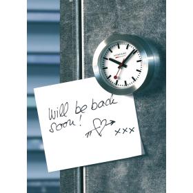 Der Klassiker am Kühlschrank. Das klassische Design der Mondaine Official Swiss Railways Clock in einer Magnet-Version für den Kühl- oder Aktenschrank. Diese Uhr besticht durch das puristische und schlichte Design und schmückt auch mit ihrer Grösse von nur 50mm Durchmesser und ihrem unverwechselbaren Zifferblatt mit der markanten roten Sekundenkelle jeden Raum. Dank des mitgelieferten Ständers lässt sie sich sowohl als Tischuhr, wie auch als Wanduhr verwenden.TISCHUHREN KOLLEKTIONEinfallsreichtum und Schlichtheit sind die Elemente, die ein attraktives Designstück oft von einem wirklich ikonischen Designklassiker unterscheiden. Seit mehr als 60 Jahren folgen wir einer einfachen Idee: Form und Funktion in perfekter Harmonie. Mit unserer klassischen Kollektion konzentrieren wir uns auf das Wesentliche und verbinden edles und zeitloses Schweizer Design mit Innovation, hoher Handwerkskunst und Funktionalität, die ein Leben lang zuverlässig ist.