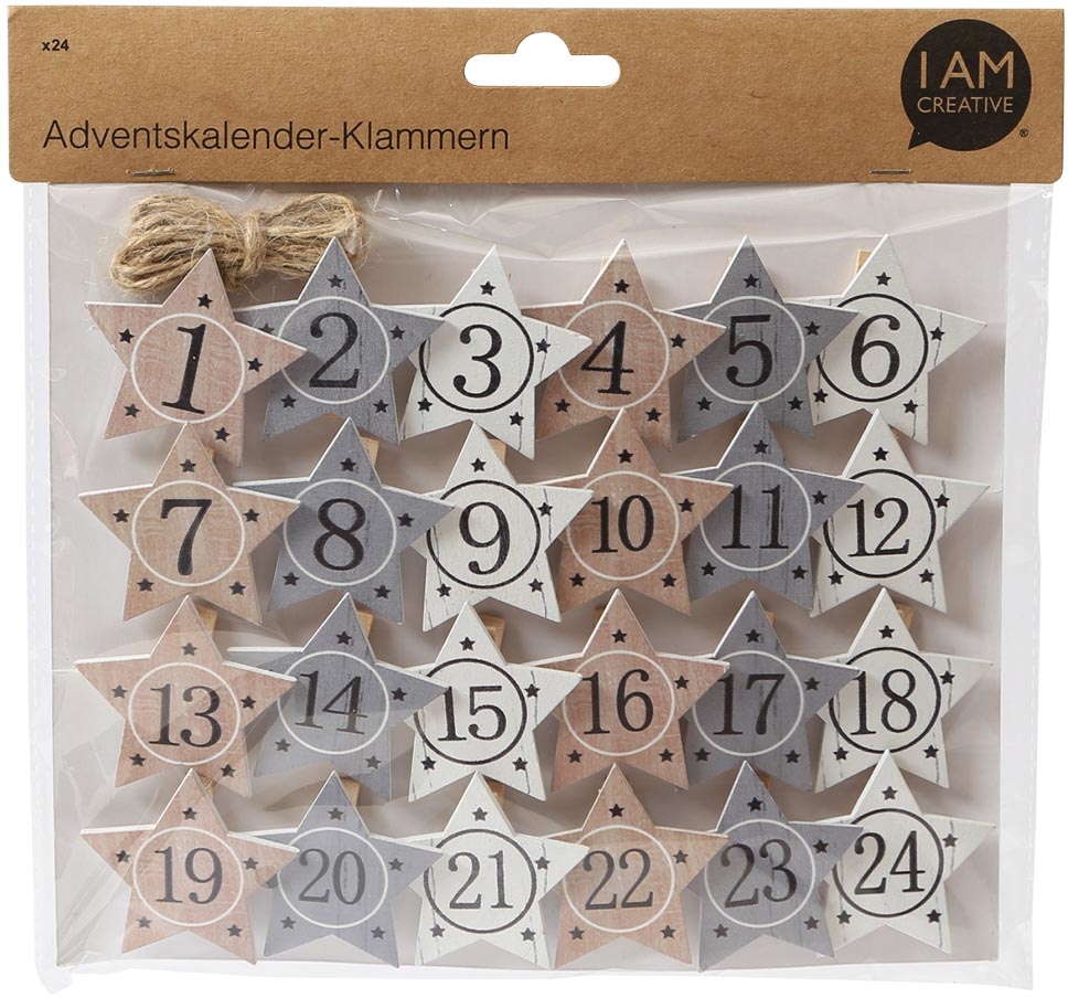 Suchen::725168 I AM CREATIVE Adventskalender Klammern MAA4088 060 pastell