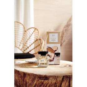 Holzige Noten umschmeichelt von fruchtigen und blumigen Nuancen. Ein angenehm warmer und würziger Duft.
