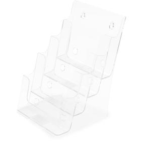 Mehrstufiger Prospekthalter für eine Vielzahl von Prospekten, spart wertvolle Standfläche. Abgeschrägt, für eine stabile Präsentation. So haben Sie Prospekte und Kataloge glasklar im Blickfeld. Wandmontage ebenfalls möglich. Material: Polystyrol transparent.