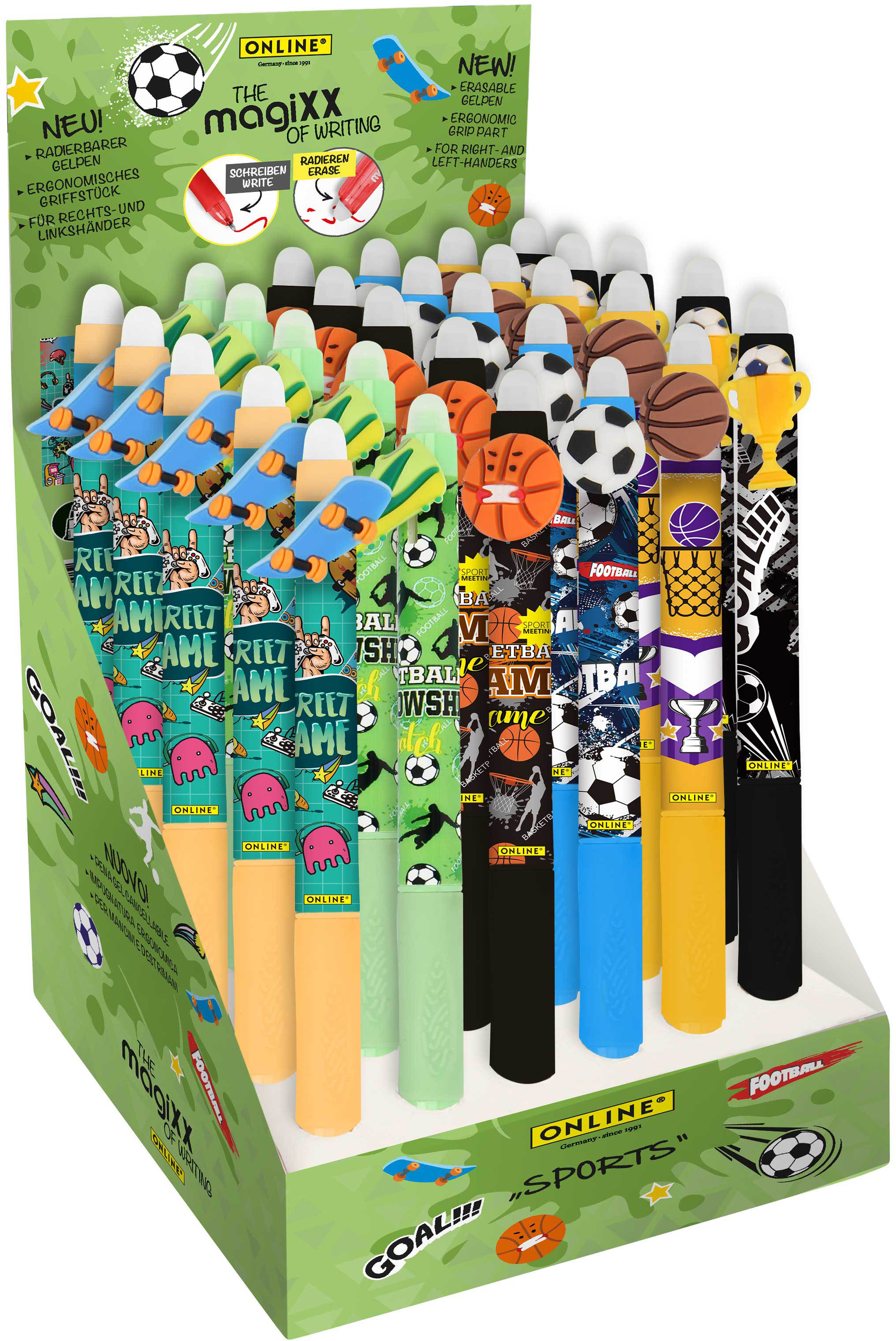 Gelpen mit stylischer Clipfigur und radierbarer Mine 0,7mm, Schreibfarbe blau. Die Mine ist kompatibel mit allen gängigen Gelpens. Der Gelpen ist für Rechts- und Linkshänder geeignet. Erhältlich in verschiedenen Designs. 30 Stück im Display