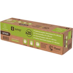 Rollenformat: 57 mm Breite (Breite) und 30 mm Durchmesser. Lauflänge (+ oder - 2m): 9 m. Speziell geeignet für SumUp-Terminals mit Drucker (SumUp 3G+ Payment Kit / SumUp Solo & Drucker).