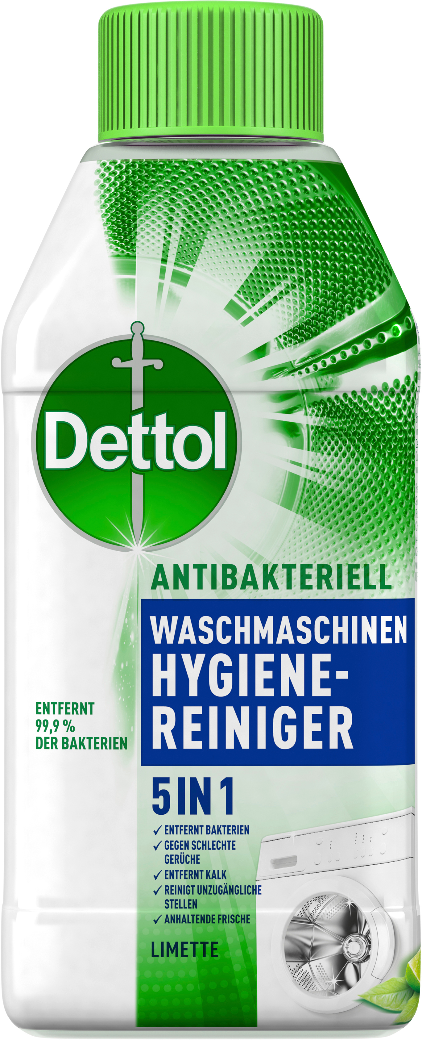 Der Dettol Antibakteriell Waschmaschinen Hygiene-Reinger Limette entfernt Schmutz, Kalk und 99,9 % der Bakterien, die sich in der Maschine ablagern und zu unangenehmen Gerüchten führen.