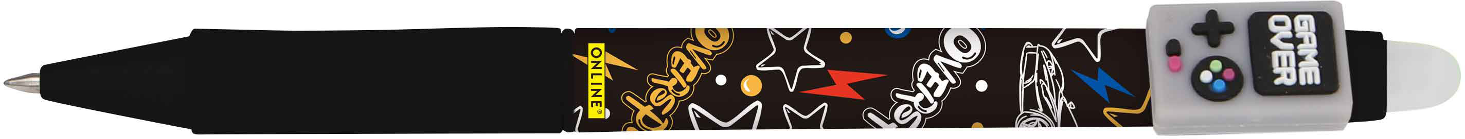 Gelpen mit stylischer Clipfigur und radierbarer Mine 0,7mm, Schreibfarbe blau. Die Mine ist kompatibel mit allen gängigen Gelpens. Der Gelpen ist für Rechts- und Linkshänder geeignet. 3 Gelpens im Beutel. Erhältlich in verschiedenen Designs.