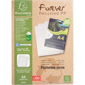 100 Klarsichthüllen, Recycling-PP 120µ, Forever Exacompta setzt sich dafür ein, die ökologischen Auswirkungen seiner Produkte zu reduzieren, vor allem bei seinen Klarsichthüllen aus Kunststoff. Die Hüllen werden vollständig aus recyceltem Polypropylen hergestellt, das aus Post-Consumer-Abfällen stammt, die gesammelt, sortiert und wiederverwendet wurden. Dies ist eine echte Revolution auf dem Markt für Schutz- und Präsentationshüllen, auf dem Kunststoff immer noch unverzichtbar ist. Genarbte Hüllen mit einer Standardstärke von 120. Flexible, transparente Hüllen für den täglichen Gebrauch. Reissfest und tintenabwe isend, damit Sie Ihre Dokumente lange aufbewahren können. L-förmige Öffnung oben und auf der rechten Seite, mit Aussparung, um das Einlegen von Dokumenten zu erleichtern. Die Klarsichthüllen sind mit dem Blauen Engel ausgezeichnet, dem anspruchsvollsten Gütesiegel für Recyclingprodukte, das die Verwendung von recycelten Post-Consumer-Materialien garantiert.