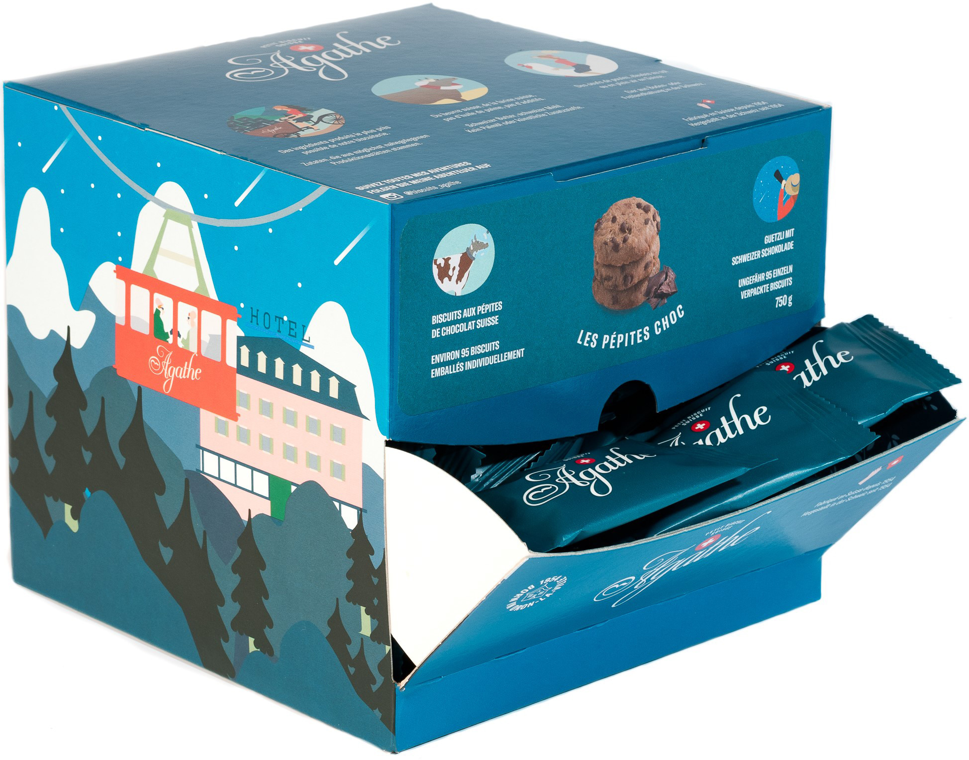 Schokoladen-Sablés verfeinert mit kleinen Schweizer Bitterschokoladenstückchen.