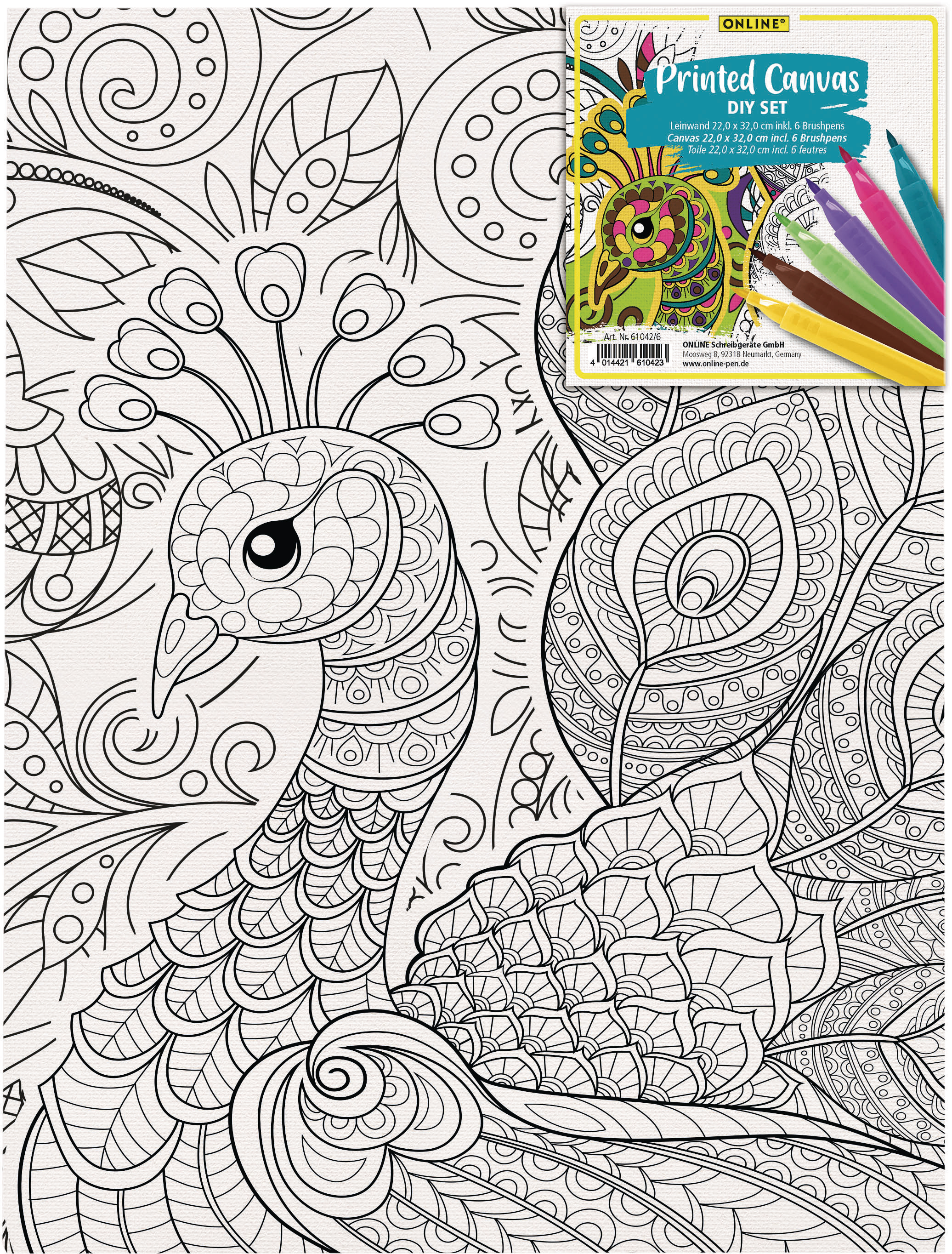 Canvas Painting Set inkl. 6 Brushpens, Leinwand ca. 22x32cm zum Ausmalen