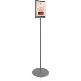 Der magnetische Bodenständer für A4-Formate, doppelseitig für maximale Wirkung. Magnetische Frontseiten ermöglichen das schnelle und einfache Wechseln der Einlagen. Ideal für die Gastronomie, den Einzelhandel, Museen, Ausstellungen, Messehallen, Empfangs- und Wartebereiche, Konferenzräume etc. Material: Metall/PMMA. Grösse: 330 x 1422 x 330 mm (B x H x T).