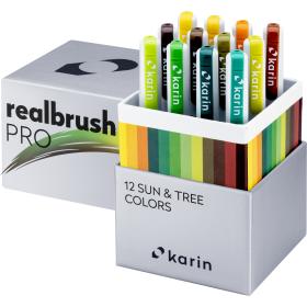 REAL BRUSH PRO sind in einem Markergehäuse eingeschlossene moderne Pinsel (sog. real brush Marker) die eine grosse Auswahl an vorgefertigten Farben bieten. Mit ihnen können Sie mit beliebten Techniken des Mischens und Auftragens von Farben eine unendliche Anzahl zusätzlicher Farben und deren Schattierungen erzeugen. Sie werden mit der „Free Ink“-Technologie hergestellt, sodass die Farbintensität bis zum letzten Tropfen unverändert bleibt. Sie enthalten 2,4 ml ungiftige, intensive Farbe auf Farbstoffbasis bzw. bei Neonfarben auf Pigmentbasis. Pinselgrösse: 4 mm.
