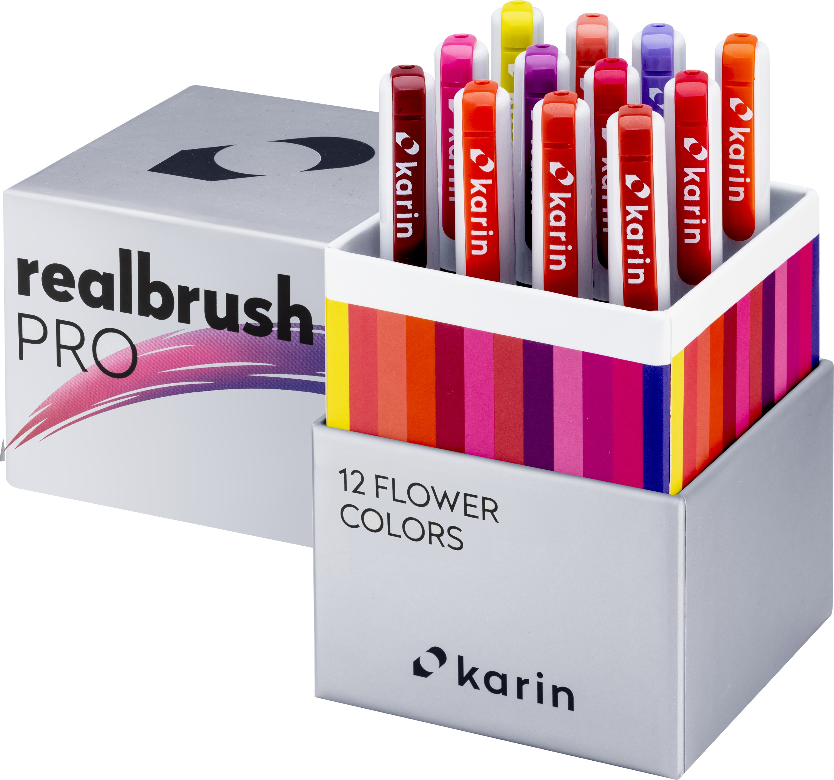REAL BRUSH PRO sind in einem Markergehäuse eingeschlossene moderne Pinsel (sog. real brush Marker) die eine grosse Auswahl an vorgefertigten Farben bieten. Mit ihnen können Sie mit beliebten Techniken des Mischens und Auftragens von Farben eine unendliche Anzahl zusätzlicher Farben und deren Schattierungen erzeugen. Sie werden mit der „Free Ink“-Technologie hergestellt, sodass die Farbintensität bis zum letzten Tropfen unverändert bleibt. Sie enthalten 2,4 ml ungiftige, intensive Farbe auf Farbstoffbasis bzw. bei Neonfarben auf Pigmentbasis. Pinselgrösse: 4 mm.