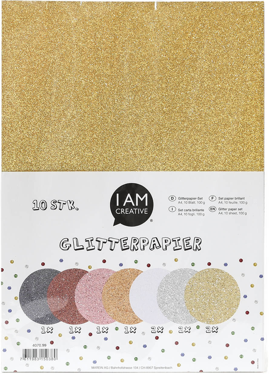 I AM CREATIVE Glitterpapier A4 4070.99 multicolor, 100g 10 Stück 727669-ITC