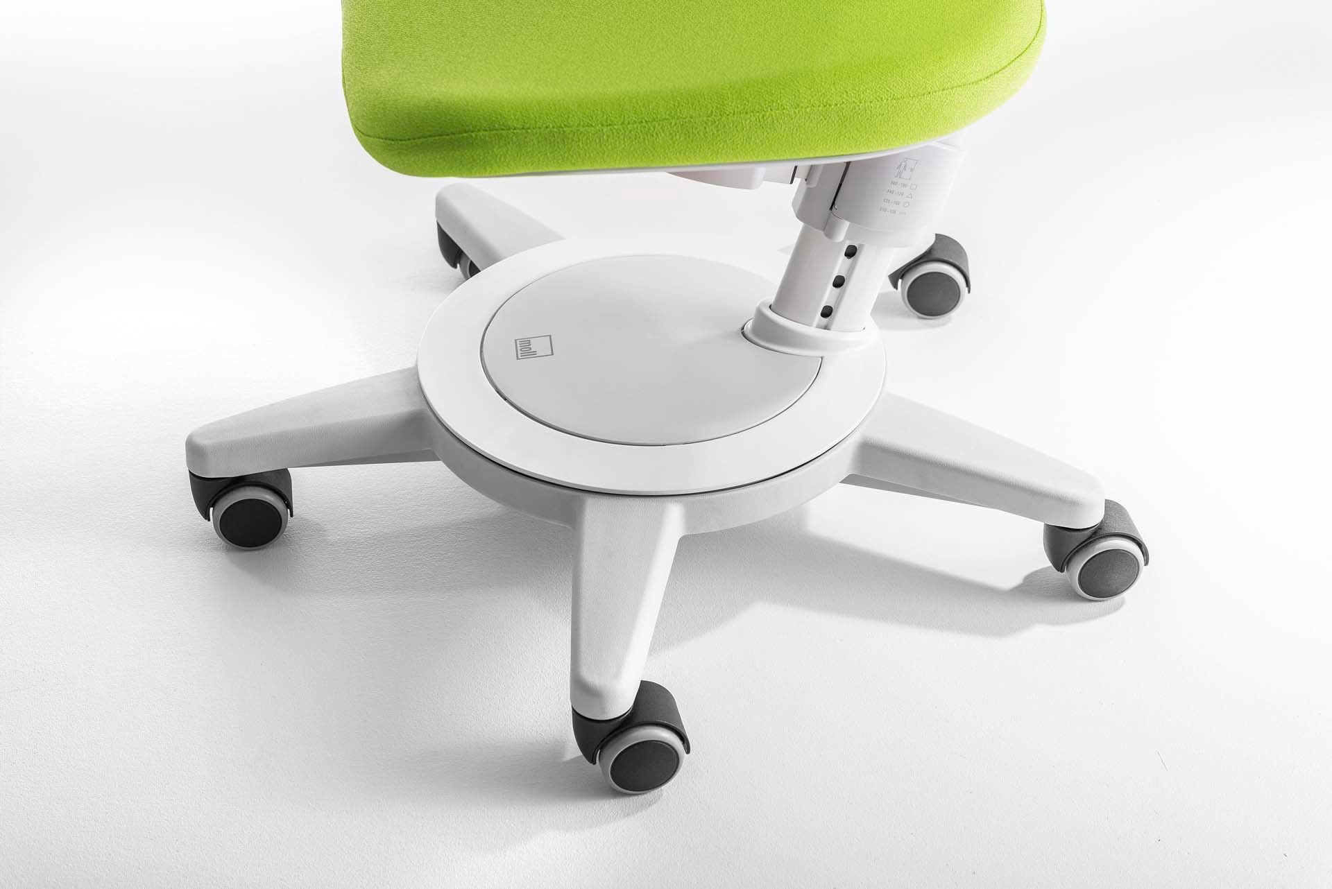 Der ergonomische und "mitwachsende" Moll Kinderbürodrehstuhl Maximo kann auf die gewünschte Sitzhöhe von 28 - 54 cm eingestellt werden. Unabhängig davon ist auch die Rückenlehne in der Höhe verstellbar. So kann der Stuhl optimal an die Körpergrösse angepasst werden. Die Sitzfläche ist mit ÖKO-TEX®-Standard-100 zertifiziertem Stoff bezogen. Das gesunde, ergonomische Sitzen wird durch das speziell ausgeformte Polster, eine stossgedämpfte Sitzfläche und die pendelnd gelagerte Rückenlehne gefördert. Der Körper gleicht das Pendeln kontinuierlich aus, verändert so seine Haltung und beugt so aktiv Rückenschmerzen vor. Der Moll Schreibtischstuhl für Kinder wird mit einem stabilen 5-Stern Kunststofffuss und mit Universallrollen ausgeliefert. Der Drehstuhl von Moll ist GS geprüft und erfüllt damit sämtliche sicherheitsrelevanten Voraussetzungen. Der Hersteller gewährt auf dieses Produkt eine Garantie von 5 Jahren.