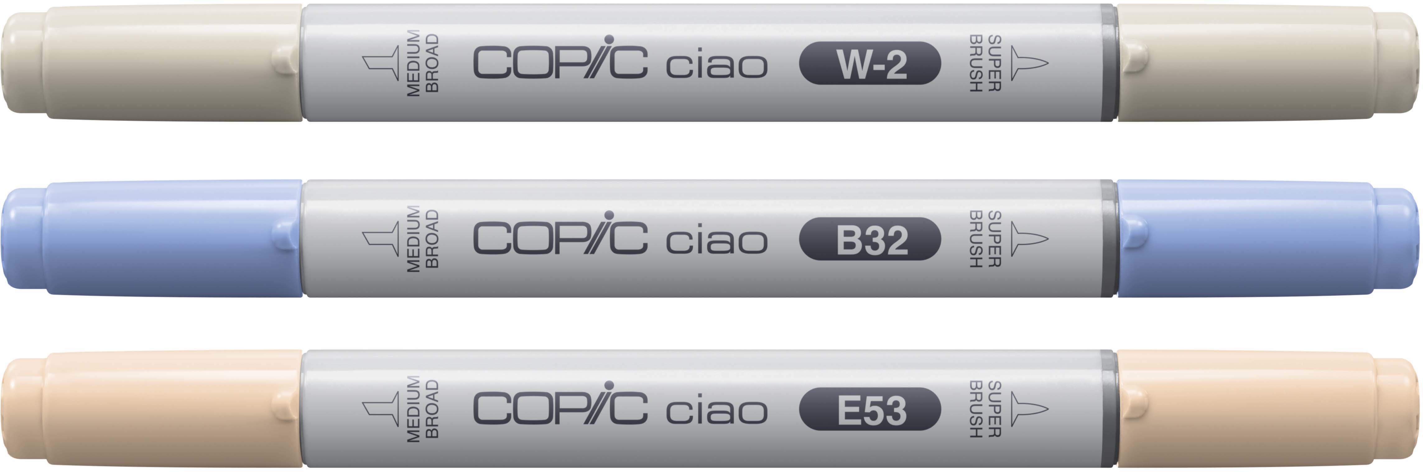 Neue, faszinierende Sets, die eine grosse Palette beliebter Themen für ein breites Einsteigerpublikum bieten. Mit den user-freundlichen Copic Ciao-Minipaletten LAYER & MIX kannst du deine Copic-Reise ganz einfach, kostengünstig und benutzerfreundlich starten. Jedes Set beinhaltet nur 3 Farben, mit denen du durch Übereinanderlegen und Mischen insgesamt 12 Farbtöne kreieren kannst. Die abgebildeten Farbmuster und Illustrationen auf den Verpackungen geben einen inspirierenden Einblick in das Potenzial der Möglichkeiten, die du mit dem LAYER & MIX-Konzept erzielen kannst. Die Sets eignen sich auch hervorragend zum Sammeln, da sie jeweils einzigartige Farbkombinationen ohne Duplikate enthalten. Cozy Palette. B-32 (Pale Blue), E-53 (Raw Silk), W-2 (Warm Gray No. 2)