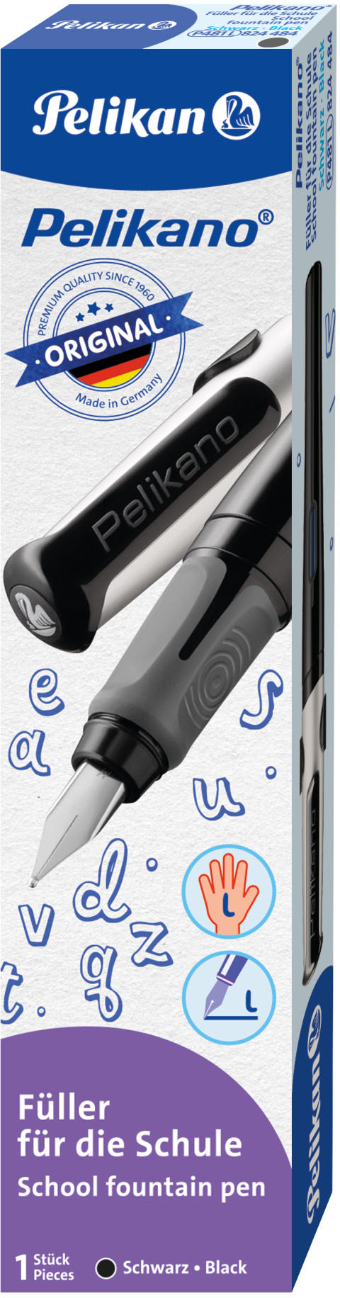 Dieser Pelikano® Füllhalter ist für die Bedürfnisse von Linkshändern konzipiert. Durch die Edelstahlfeder gleitet der Pelikano sanft übers Papier. Darüber hinaus sorgt die sanfte Feder für kratzfreies Schreiben und verhindert das Auslaufen der Tinte. Die spezielle Soft-Griffzone des Füllerhalters unterbindet, dass die Finger beim längeren Schreiben ermüden. Zusätzlich verhindert die hochwertige Metallkappe das Wegrollen. Im grossen Tintensichtfenster kann mit einem Blick der Tintenstand in der Patrone abgelesen werden. Dem Pelikano® Füllhalter liegt standardmässig eine königsblaue Grossraumtintenpatrone bei. Diese Tinte lässt sich bei kleinen Schreibfehlern problemlos durch einen Tintenlöscher rückgängig machen. Alle Pelikano® Original Füllhalter werden in Deutschland hergestellt.