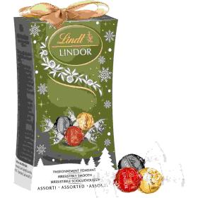Verschenken Sie Glücksmomente mit diesem süssen Geschenk, gefüllt mit unseren LINDOR Kugeln in drei verschiedenen Geschmacksrichtungen: Milch, Dunkel 60% und Weiss. Engagiert für Nachhaltigkeit, unterstützt das Lindt & Sprüngli Farming Program die Kakaobauern.