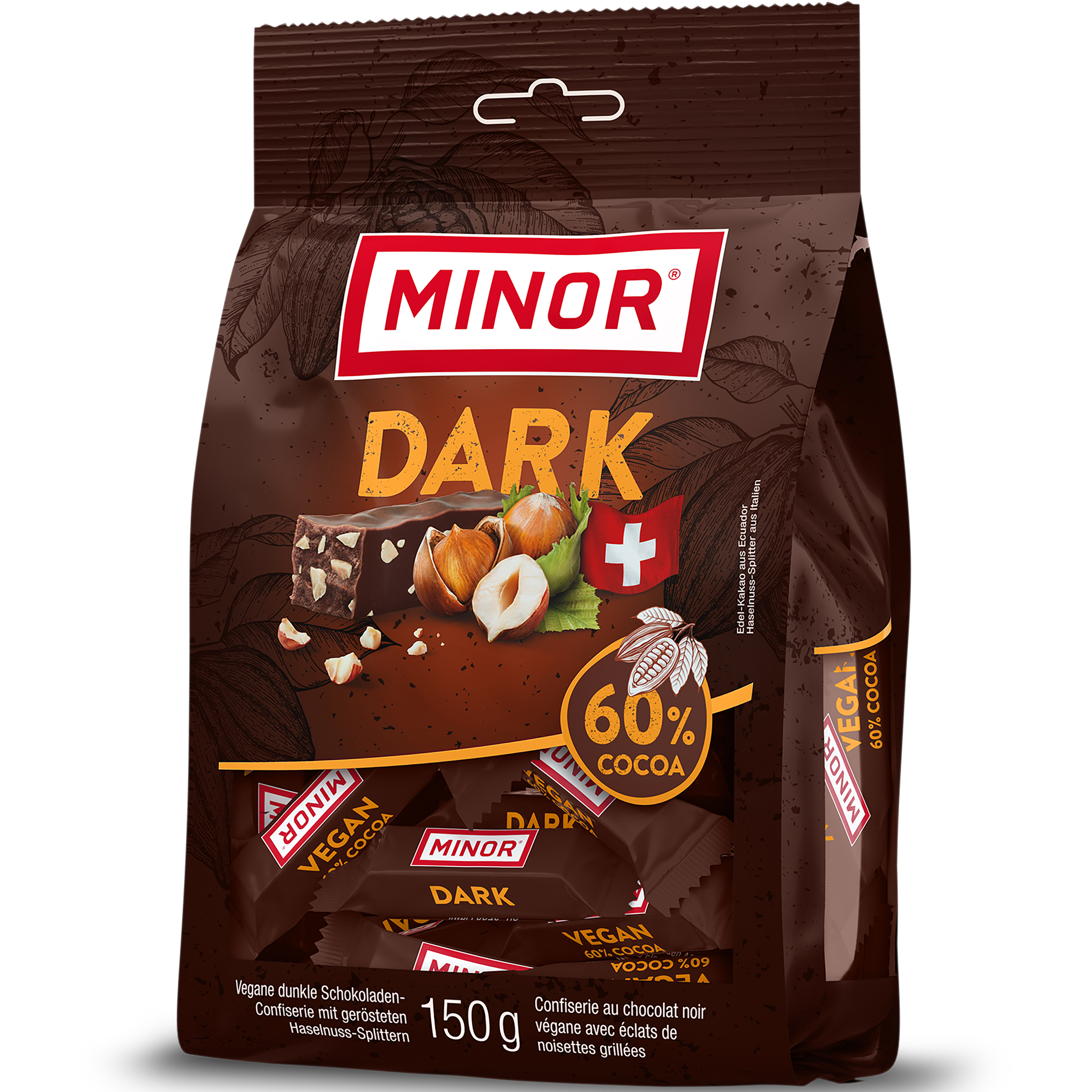 So ein besonderes Minor! Minor Dark 60% Cocoa ist fein-herb im Geschmack, vegan und vor allem eins: zum Teilen viel zu schade! Minor Dark 60% Cocoa enthält nebst feinem Edelkakao aus Ecuador besonders viele Haselnüsse und überzeugt mit natürlichen Zutaten sowie einem harmonischen, nicht zu süssen Geschmack: So verführerisch kann vegan sein.