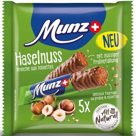 Das feine Munz Haselnuss Prügeli begeistert mit seinem besonders intensiven haselnussigen Geschmack und differenziert sich daher deutlich von anderen Munz Prügeli. Es hat in der Nuss-Schokolade den höchsten Nussanteil mit rund 21%. Der besonders spürbare intensive Nussgeschmack kommt durch die intensiv und trotzdem schonend gerösteten Haselnusssplitter – vor allem aus Italien. Sie sind sowohl in der Pralinéfüllung als auch im Überzug der Munz-Schokolade und das Prügeli wird mit den Haselnuss-Splittern zusätzlich bestreut.