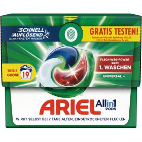 Die Ariel All-in-1 PODS Waschkapseln wurden für die Kaltwäsche entwickelt und lösen sich selbst in kaltem Wasser schnell auf. Wasche kälter mit den Ariel All-in-1 PODS Universal+: Spare Energie bei jedem Waschgang und reduziere Deine CO₂-Emissionen. Zudem tragen die Ariel All-in-1 PODS auch zum Reduzieren von Plastik bei dank der recycelbaren ECOCLIC Kartonbox, die in der Altpapiertonne recycelbar ist. Zu 70 % aus recycelten Fasern hergestellt, enthält sie nur maximal 5 % Plastik und wurde entwickelt, um Deine PODS zu schützen. Die zu 100 % wasserlösliche Folie der Ariel All-in-1 PODS-Waschkapseln löst sich schnell bei Kontakt mit dem Wasser auf und setzt die kraftvolle Formel zur Fleckenentfernung frei.