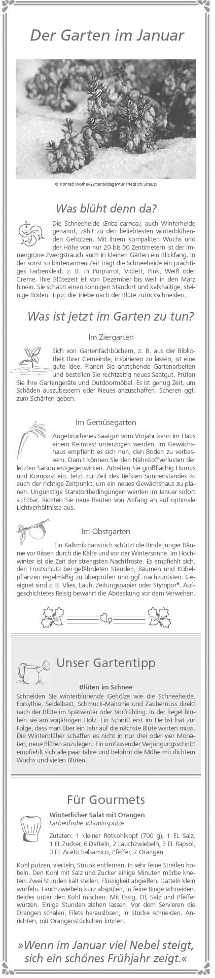 Schlanker Wandkalender mit viel Platz für Notizen. Viele Informationen und Tipps rund um den Garten auf der Rückseite.