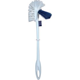 WC-Besen mit Doppelrandreiniger, mit Pinsel und Reihe am Griff.