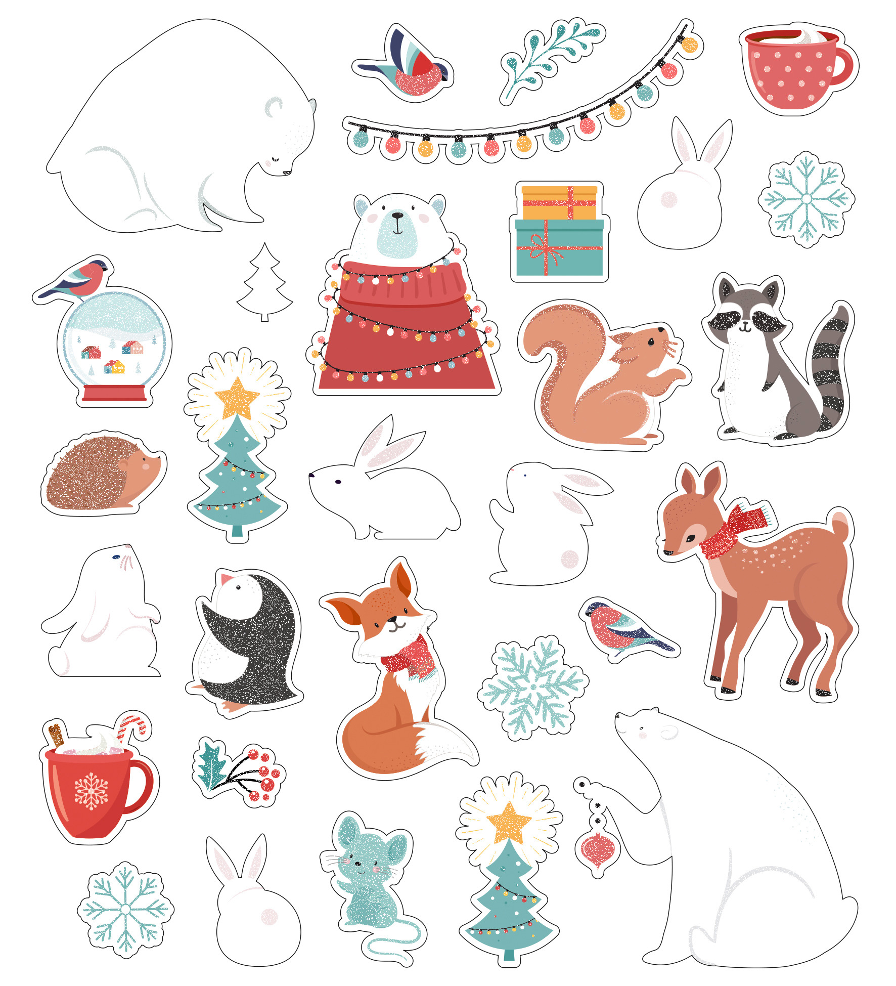 Glitzer Sticker Winter, 112 Stück ca. 1-6 cm