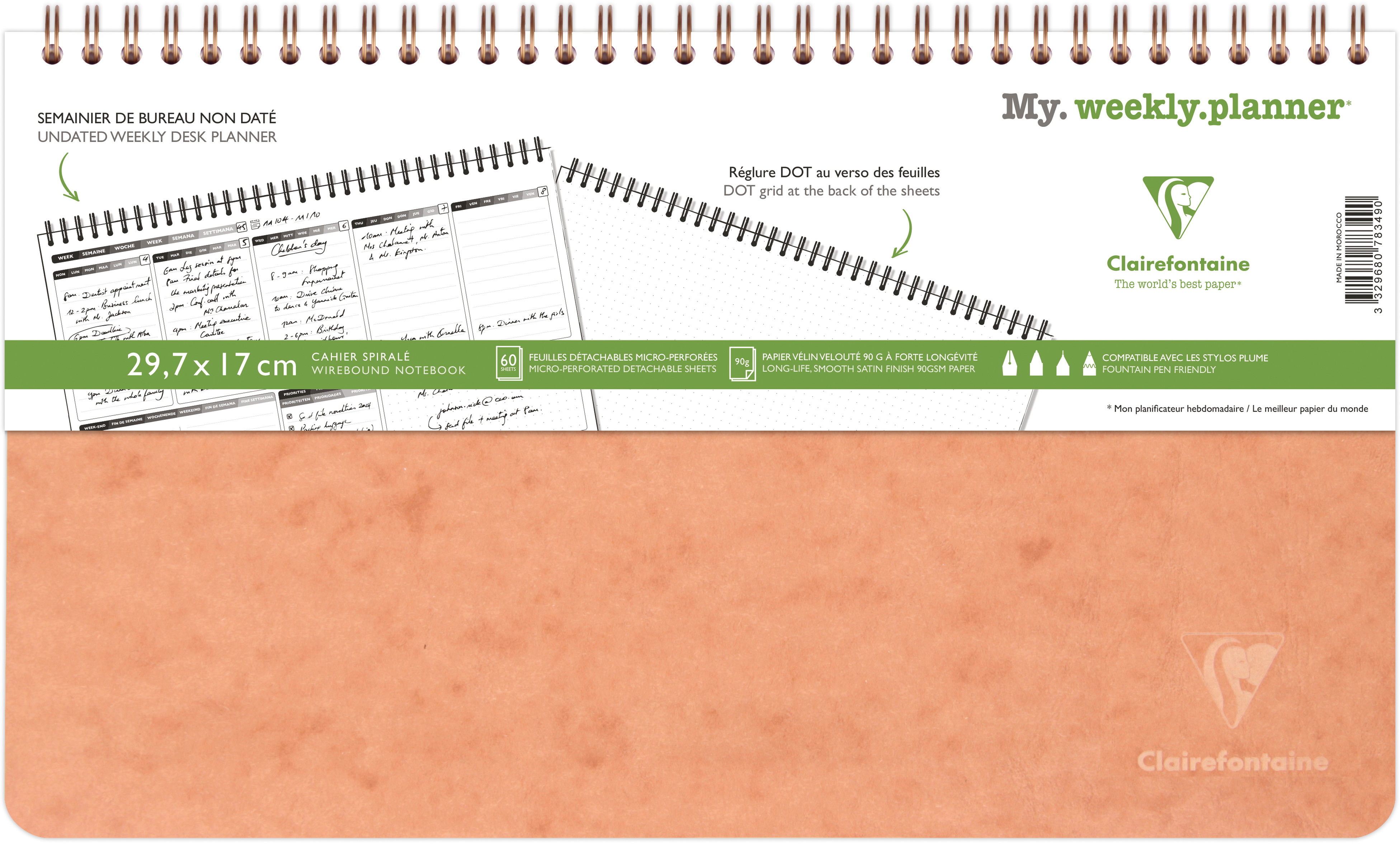 Das Notizbuch Age Bag- My.daily.planner, als Spiralbuch A5 mit 250 abtrennbare Seiten (125 Blatt) 90g für die Planung und Organisation Ihres Tages: Setzen Sie auf der linken Seite Ihre Prioritäten, Mahlzeiten, Aktivitäten usw. und beschreiben Sie auf der rechten Seite Ihren Tagesablauf. Mikroperforierte und abtrennbare Blätter. Einband aus Karton, in der Masse gefärbt, gekörnt mit Lederstruktur: langlebig und widerstandsfähig. Samtweiches Velinpapier 90g von Clairefontaine, für ein einzigartiges Schreiberlebnis. Hergestellt in Frankreich. PEFC-zertifiziert für eine nachhhaltige Waldwirtschaft.