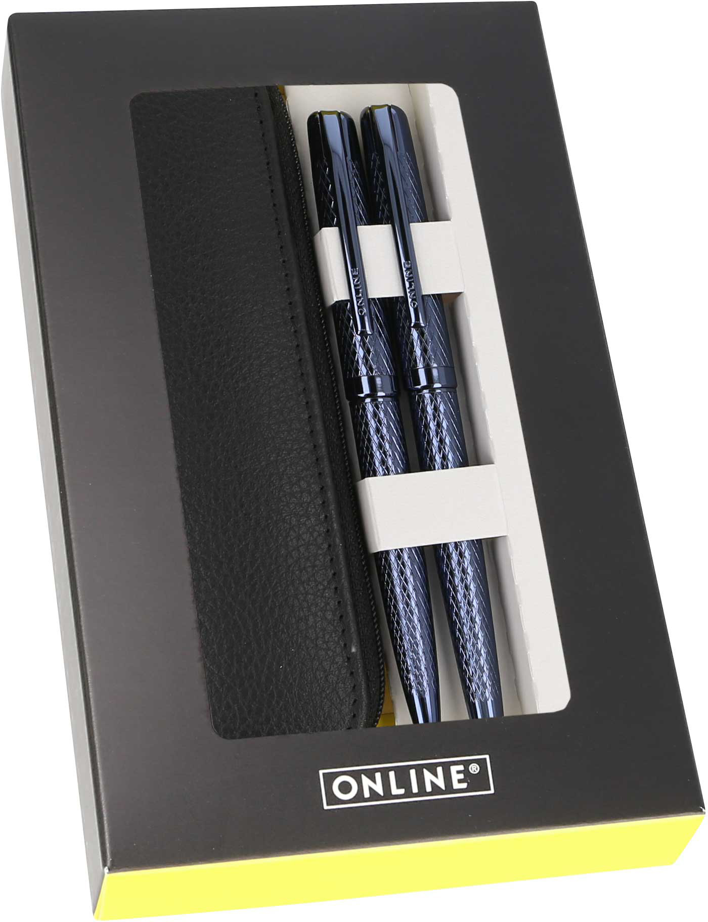 Das Eleganza Geschenkset von ONLINE, Metall-Füllhalter und Kugelschreiber, in ausgewogenem Design, mit dem Eleganza Füllhalter, nachfüllbar mit Standardpatronen, und dem Eleganza Kugelschreiber, ausgestattet mit der hochwertigen Original ONLINE Grossraummine, Schreibfarbe Schwarz. Dieses Schreibgeräte-Set garantiert Schreibvergnügen pur. Zusammen mit einem hochwertigen Echtleder-Etui verpackt ist dieses Set die perfekte Geschenkidee.
