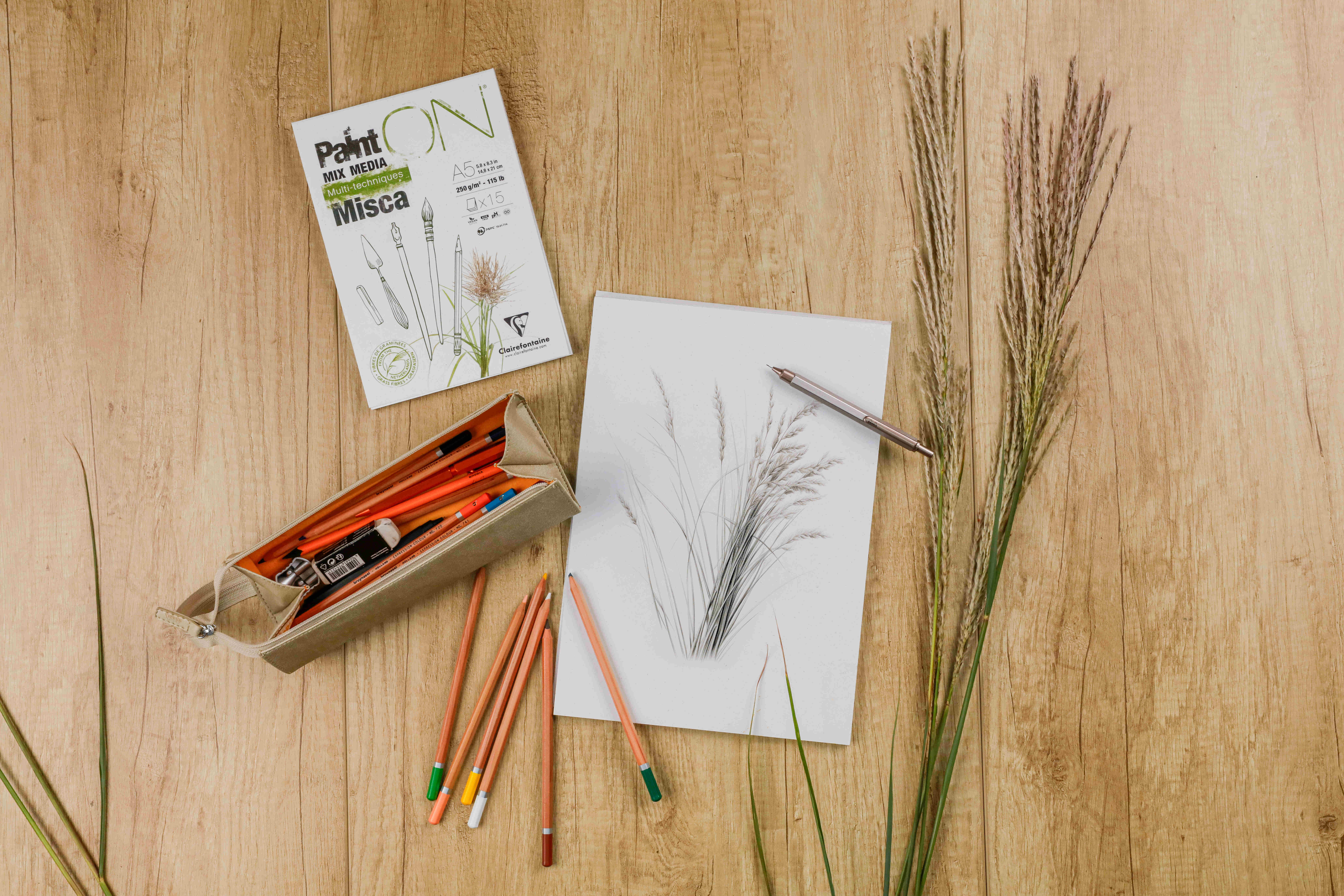 PaintON Misca, Block A2 15 Blatt 250g Robustes Mixed Media-Papier 250g aus 100% Zellulose. Weisses Papier auf Basis von Fasern der Miscanthus-Pflanze. Geeignet für Trockentechniken (Bleistift, Pastellkreide, Graphitstift, Filzstift) und Nasstechniken (Tusche, Gouache, Acryl). Mit einer leicht rauen Oberfläche, um grafischen Illustrationen mehr Tiefe zu verleihen. Ausgezeichnetes Absorptionsvermögen, Korrekturen sind möglich.