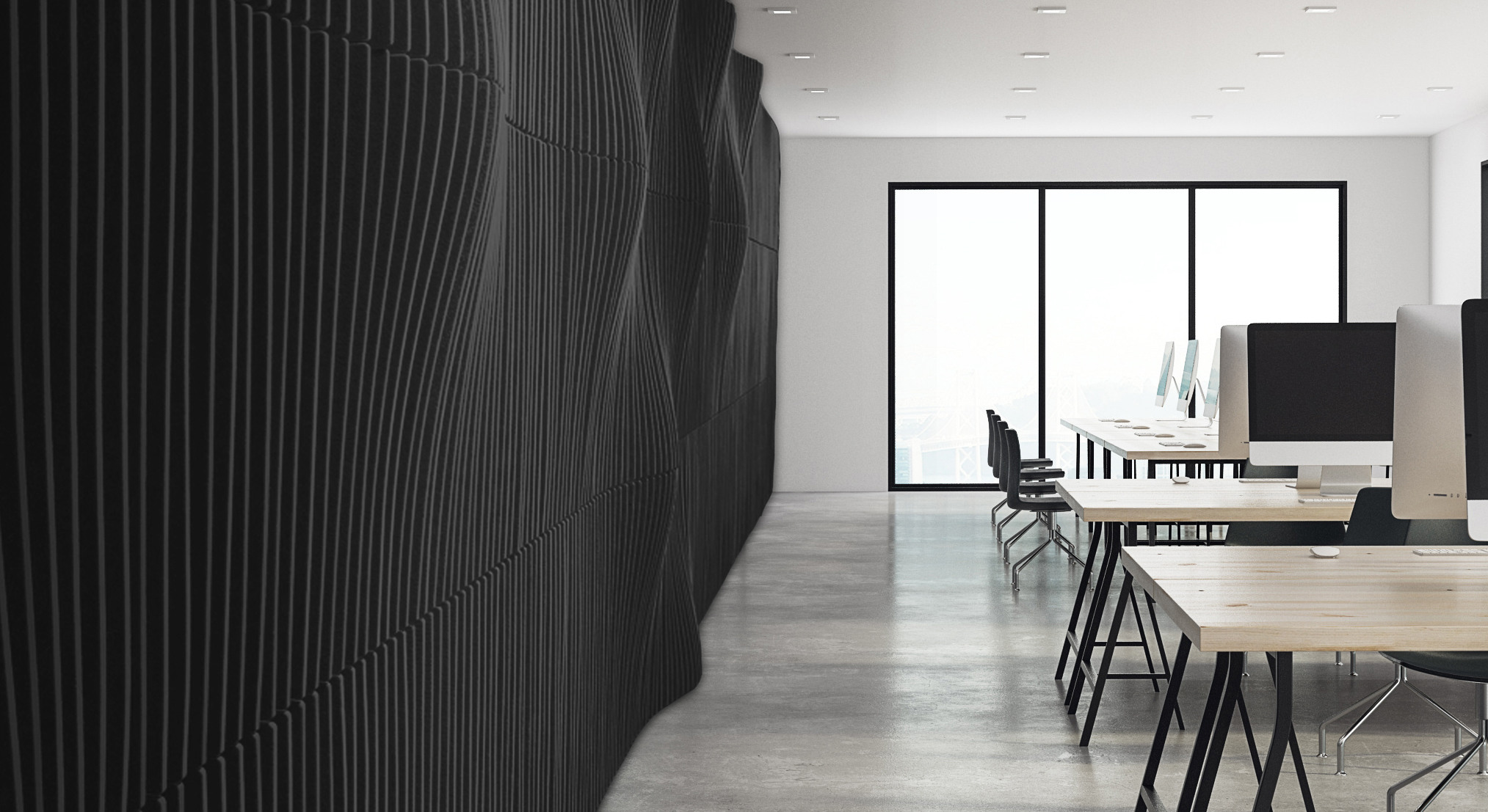 • einzigartiges Wandschalldämpfer-System bestehend aus drei verschiedenen Modulen. Durch geschickte Kombination der Module können unzählige Variationen von Wellen und fliessenden Formen konfiguriert und scheinbar endlos wirkende Wandskulpturen erschaffen we