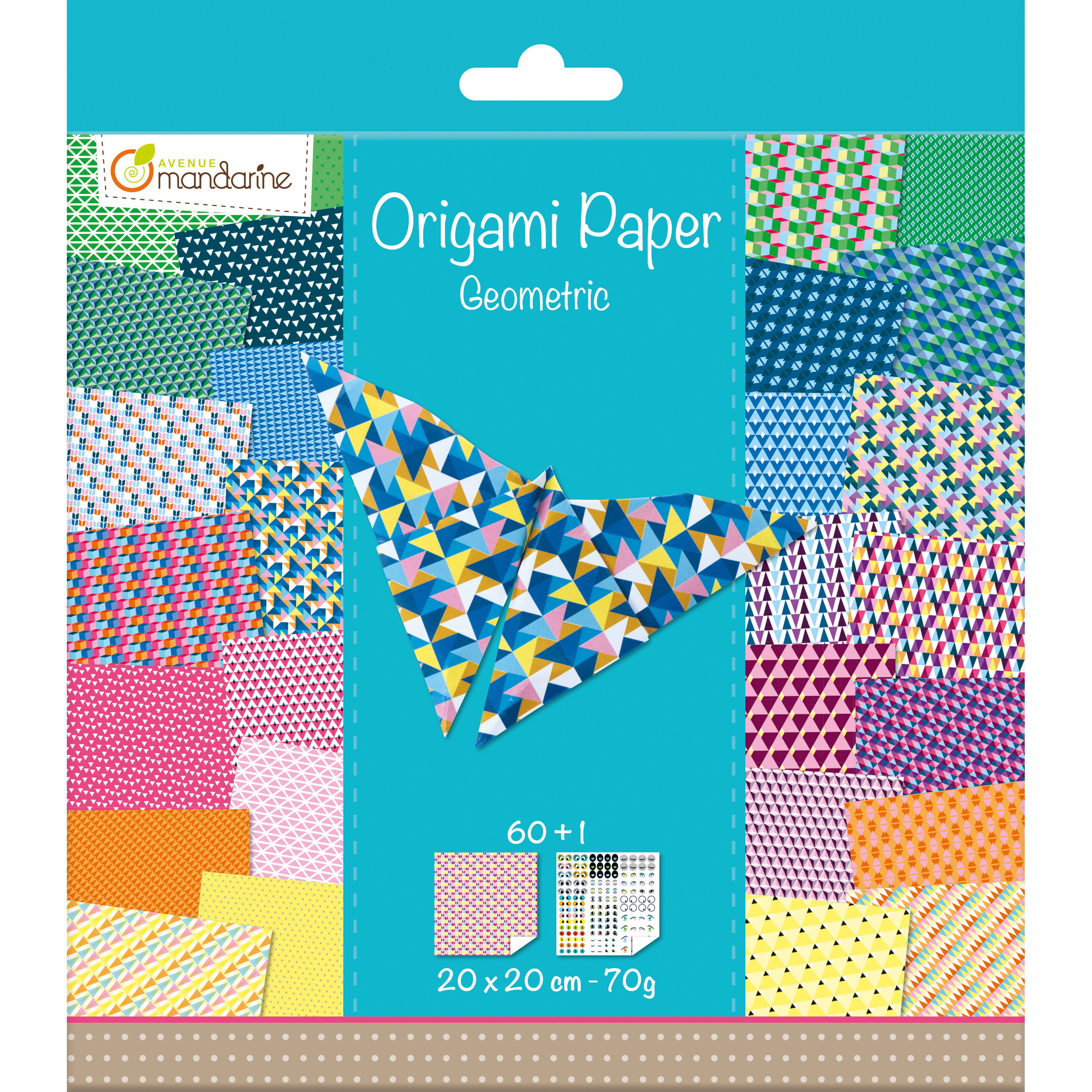Origami Paper Geometric, 60 Blatt 20x20 cm, 70g Origami ist die Kunst des Papierfaltens. Es ist eine unterhaltsame Aktivität ohne viel Aufwand. Mit Origami kann man Tiere, Gegenstände oder Figuren herstellen, mit denen Kinder spielen können, während es gleichzeitig die Fähigkeiten des Verstehens, der Konzentration und der motorischen Fähigkeiten entwickelt. Eine effektive, unterhaltsame und lehrreiche Art, Kinder zu beschäftigen und auf spielerische Weise ihre Konzentration und Fantasie zu fördern. Inhalt: 60 Blatt Origamipapier beidseitig bedruckt 20x20 cm, 70g + 1 Stickerbogen mit selbstklebenden Augen. PEFC-zertifiziert. Entspricht den CE-Normen. Für Kinder ab 5 Jahren.