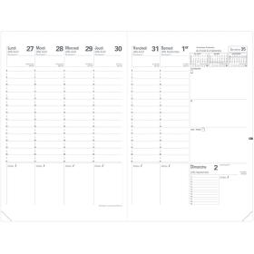 Schlichter Terminplaner mit abnehmbarer Hülle und abtrennbaren Ecken zur einfachen Orientierung.