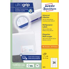 Qualität vom Etiketten-Experten: die weissen Universal-Etiketten 3474 im Format 70 x 37 mm von Avery Zweckform haften mit starker permanenter Klebkraft absolut zuverlässig auf Papier, Karton, Glas und vielen gängigen Kunststoffen. Sie sind die Premium-Lösung zur Beschriftung von Unterlagen, Dokumenten und vielem mehr in Office und Home Office oder auch privat. Zum Adressieren von Briefen ist das Format besonders geeignet (2.400 Etiketten/Pack). ultragrip® macht ultra-effizient: die innovative ultragrip®-Technologie mit dem spürbaren Profil auf dem Etikettenbogen gewährleistet einen ultra-präzisen und absolut staufreien Druckerdurchlauf. Regelmässig überprüft und für Laser bestätigt durch TÜV Süd. Ideal auch für Seriendruck und grössere Druckaufträge. Geeignet für alle Laser- und Inkjet-Drucker. So arbeiten Sie effizient wie stressfrei und schaffen sich wertvolle Zeit für die wirklich wichtigen Dinge. Ideen drucken – einfach & professionell: mit Etiketten von Avery Zweckform können Sie den kostenlosen Online Etiketten-Designer unter www.avery.eu/print nutzen. Gestalten Sie Ihr Etikett mit der Software komplett selbst, verwenden Sie eine der Design-Vorlagen zu zahlreichen Themen, die Sie individuell anpassen können oder laden Sie Ihr fertiges Design hoch und drucken anschliessend standgenau aus. So schnell und einfach sorgen Sie für einen professionellen Auftritt. Think & Care – Avery Zweckform ist seit 2020 klimaneutral: die Treibhausgasemissionen des Standortes werden durch zertifizierte Klimaschutzprojekte ausgeglichen. Schon seit 2014 wird ausschliesslich Ökostrom/-gas verwendet. Forschung, Entwicklung, Produktion, Logistik und Verwaltung am Firmenstandort in Oberlaindern/Bayern garantieren höchste Qualitäts- und Umweltstandards sowie kurze Lieferwege. Das Obermaterial dieser chlorfrei gebleichten Etiketten wird zu 100% aus FSC®-zertifiziertem Papier aus verantwortungsvoll bewirtschafteten Wäldern hergestellt.