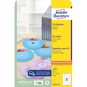 Qualität vom Etiketten-Experten: die weissen, blickdichten CD-Etiketten L7676-25 im runden SuperSize Format Ø 117 mm von Avery Zweckform eignen sich hervorragend zum professionellen Beschriften von CDs. 50 CD-Aufkleber auf 25 Bogen. Sie können sich auf einen absolut staufreien Druckerdurchlauf ohne Klebstoffablagerungen im Drucker und ein gestochen scharfes Druckbild ohne Verwischen verlassen. Geeignet für alle gängigen Laser- und Inkjet-Drucker. SuperSize CD-Etiketten bedecken die Fläche der CD sowie die durchsichtige Mitte. Die CD-Aufkleber sind ausserdem mit praktischen Haltelaschen ausgestattet, die ein einfaches und mittiges Aufbringen ermöglichen. Ideen drucken - einfach & professionell: mit Etiketten von Avery Zweckform können Sie den kostenlosen Online Etiketten-Designer unter www.avery.eu/print nutzen. Gestalten Sie Ihr Etikett mit der Software komplett selbst, verwenden Sie eine der Design-Vorlagen zu zahlreichen Themen, die Sie individuell anpassen können oder laden Sie Ihr fertiges Design hoch und drucken anschliessend standgenau aus. So schnell und einfach sorgen Sie für einen professionellen Auftritt. Think & Care - Avery Zweckform ist seit 2020 klimaneutral: die Treibhausgasemissionen des Standortes werden durch zertifizierte Klimaschutzprojekte ausgeglichen. Schon seit 2014 wird ausschliesslich Ökostrom/-gas verwendet. Forschung, Entwicklung, Produktion, Logistik und Verwaltung am Firmenstandort in Oberlaindern/Bayern garantieren höchste Qualitäts- und Umweltstandards sowie kurze Lieferwege. Das Obermaterial dieser chlorfrei gebleichten Etiketten wird zu 100% aus FSC®-zertifiziertem Papier aus verantwortungsvoll bewirtschafteten Wäldern hergestellt.