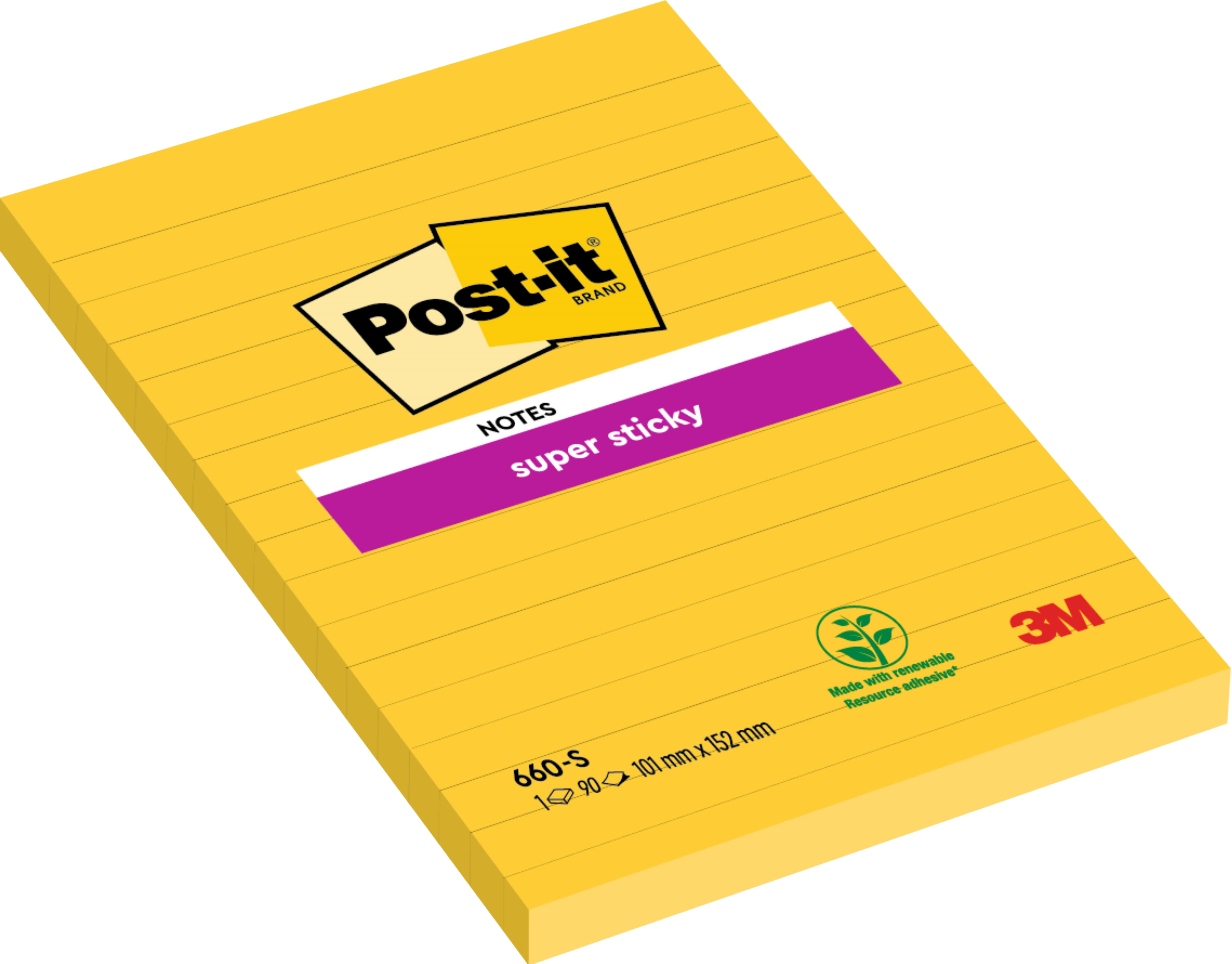 Suchen::766793 POST IT Block Super Sticky 102x152mm 660 S gelb 75 Blatt liniert