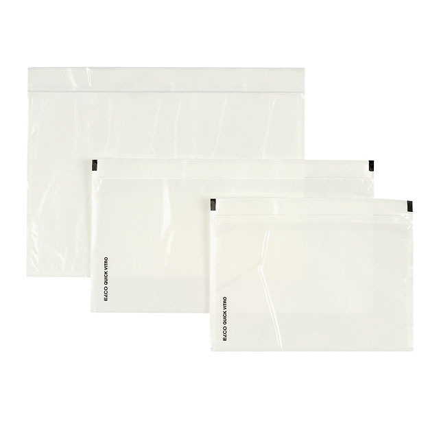 Dokumententaschen, Kunststoff, Rückseite selbstklebend, zum Aufkleben auf Karton-Versandboxen.