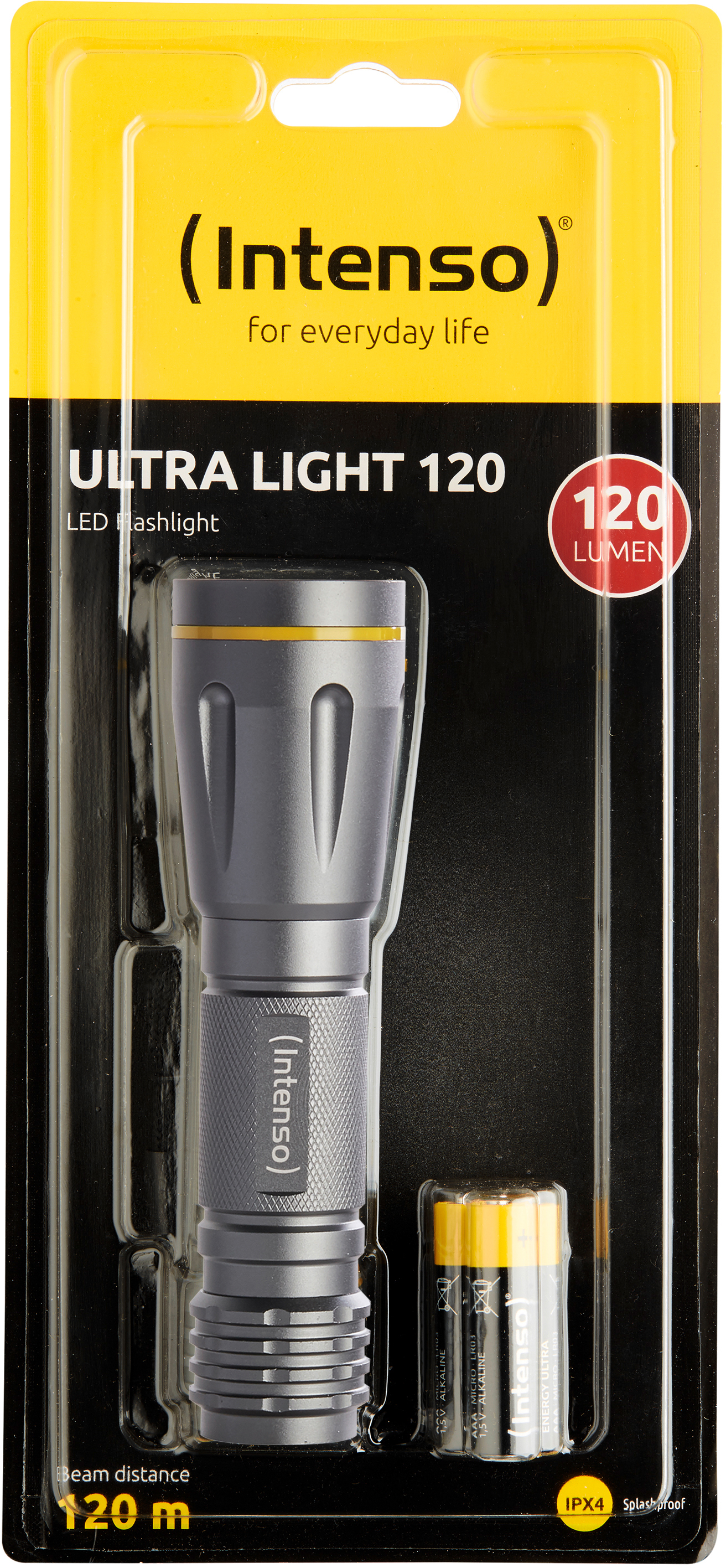 Taschenlampe von Intenso, inklusive Batterien.