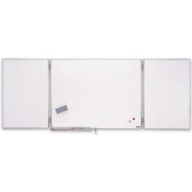 Moderne, hochwertige Schreibtafel mit anbaufähigem, eloxiertem Aluminium-Systemrahmen. Garantiert mit ihren Gehrungsecken in schlichtem Design neben eleganter Optik, den verletzungsfreien Einsatz. Die Tafel lässt sich platzsparend zusammenklappen und abschliessen. Sie verfügt über 5 separate Schreibflächen. Konzipiert für langjährigen, professionellen Einsatz, glänzt die ferroscript®-Klapptafel mit emaillierten, kratzfesten + säureresistenten Oberflächen: Magnethaftend, mit Boardmarkern beschreib- und trocken wieder abwischbar.