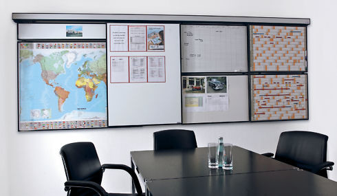 Die perfekte + preisgünstige Ausstattung für Büros, Seminar-, Schulungs- und Konferenzräume. Die Wandschiene „Kompakt“ vereint 2 Tafel-Ebenen in einer Schiene: Ruck, zuck montiert + einsatzbereit. Alle magnetoplan Systemtafeln können ohne technischen Aufwand direkt in die Wandschiene eingehängt werden (u. u.). Mit magnethaftender Blende, zum Befestigen von Flipchart- oder Pinnwand-Papier.