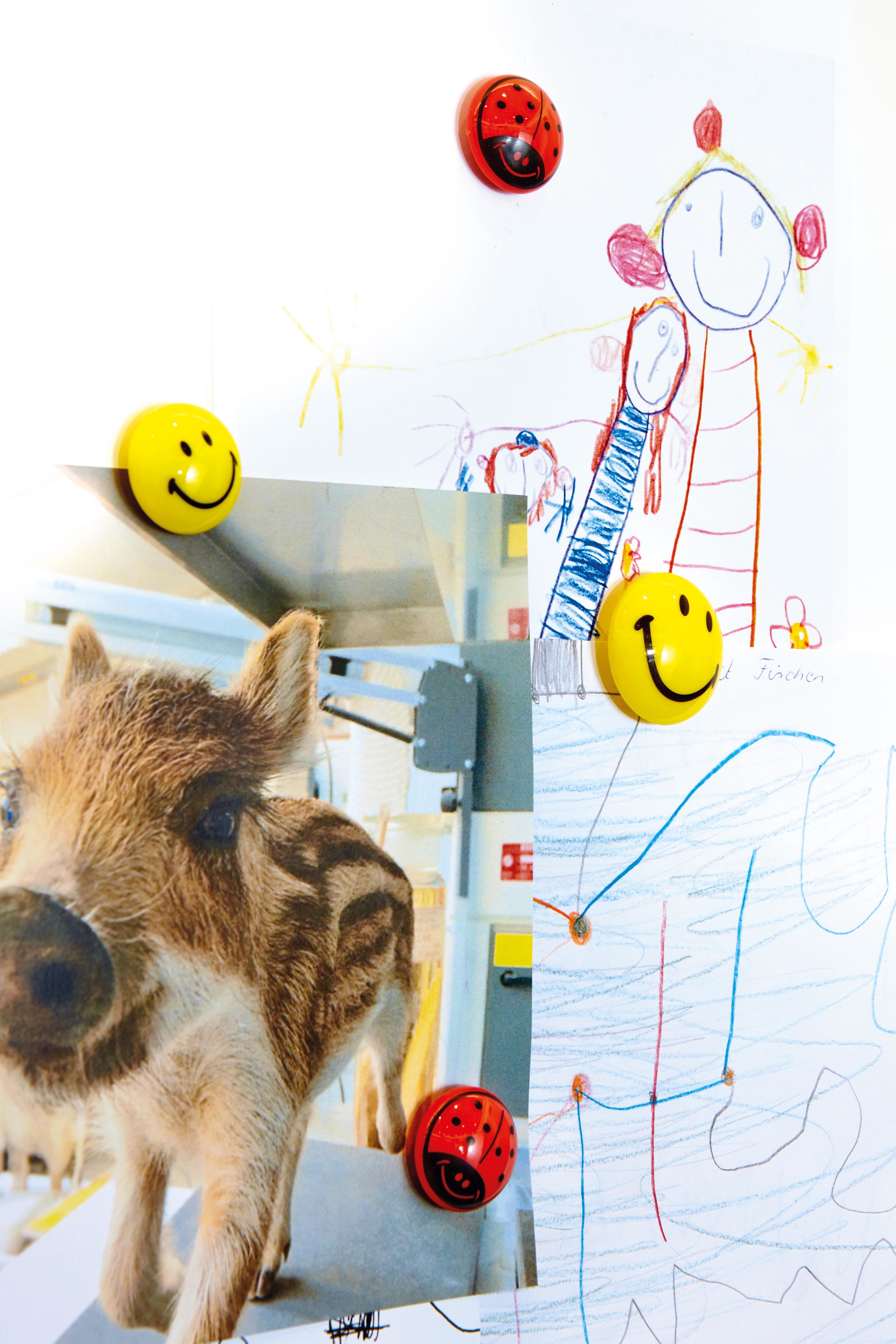 Die fröhlichen Smileys lassen in jedem Wohn- oder Arbeitszimmer gute Laune aufkommen, Haftkraft 4 x A4.