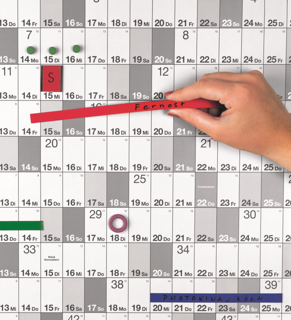 Magnethaftende Bänder auf Rolle zur Festlegung der Planungszeiträume auf Plantafeln. Durch die rückseitige Zentimeterskala lassen sie sich optimal auf die gewünschte Länge abschneiden. Beschreibbar mit wasserlöslichen Markern und wieder abwischbar.