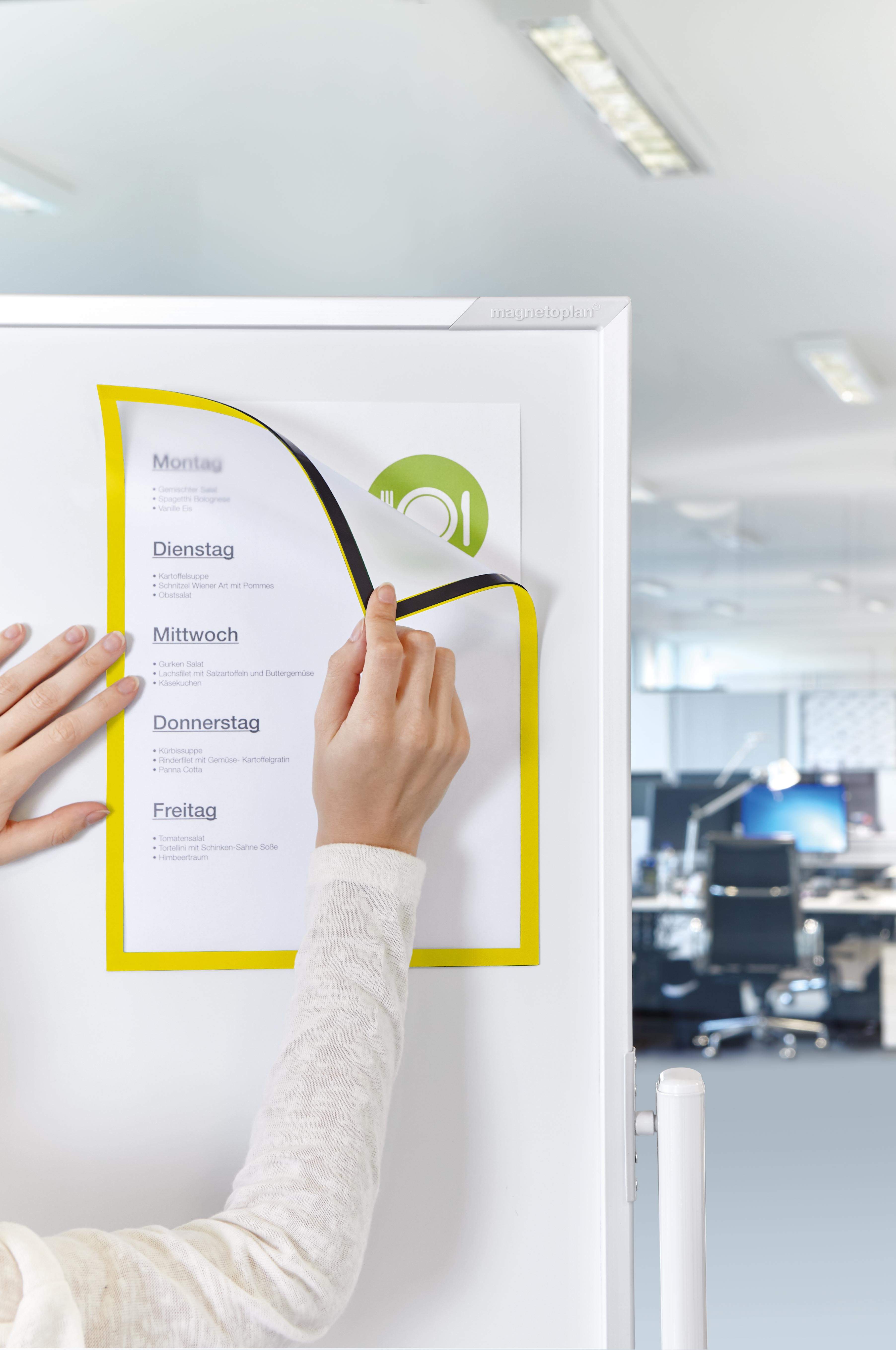 Farbiger Magnetrahmen zum Aushängen betrieblicher Informationen: Für Büro, Lager + Fertigung, ideal auch für TQM-Infotafeln.