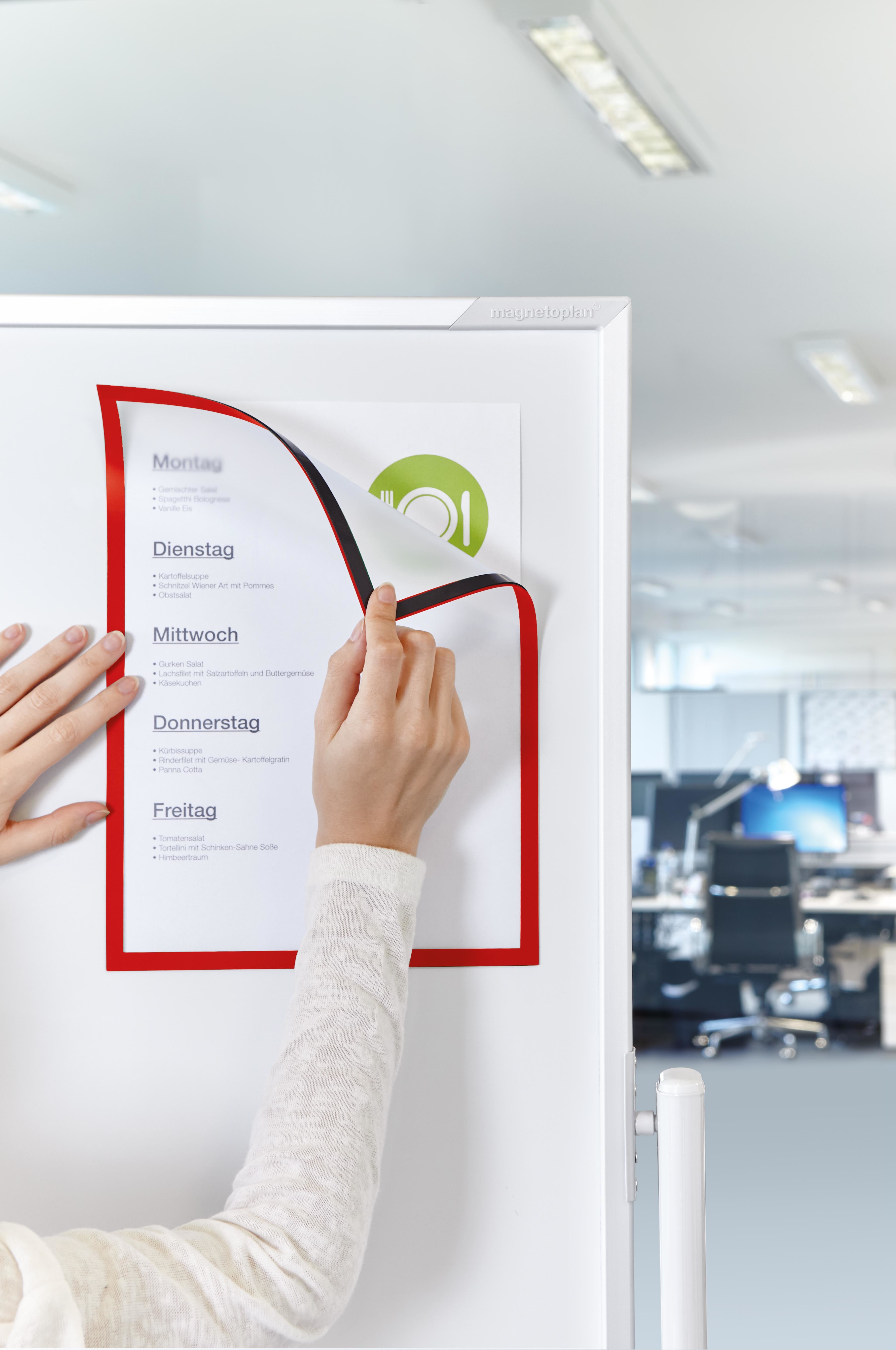 Farbiger Magnetrahmen zum Aushängen betrieblicher Informationen: Für Büro, Lager + Fertigung, ideal auch für TQM-Infotafeln.