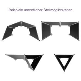 Das hochwertige Stellwand-System für eine kommunikative Raumgestaltung mit unbegrenzten Einsatz-Möglichkeiten. Doppelseitige Pinnwände zur Kommunikation, Präsentation + Information. Ideal für Empfangs-Bereiche, auf Messen + Ausstellungen. Auch als Raumteiler flexibel einsetzbar. Tafeln lassen sich auch im rechten Winkel oder kreisförmig sowie hoch und quer einhängen. Für unendliche Stell-Varianten.