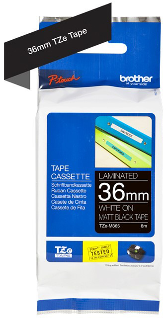Das matte laminierte TZe-M365 Schriftband ist dank der leicht lesbaren weissen Schriftfarbe besonders vielseitig einsetzbar - damit Sie zu Hause, im Büro und an anderen Arbeitsplätzen alle Beschriftungsaufträge mühelos erledigen können. Das TZe-M365 ist für eine Vielzahl von Brother P-touch Beschriftungsgeräten geeignet.