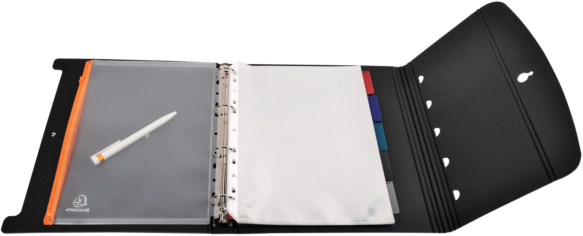 Exactive, für eine mobile und umweltfreundliche Ablage. Modernes Material, hergestellt aus 80% recyceltem Polypropylen. Leicht und dennoch robust. Ordner für Präsentation und Ablage. Kann dank des genialen Systems aufrecht aufgestellt werden.
